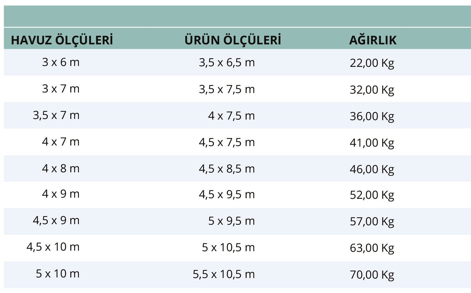 *Seçenekler bölümünden havuzunuzun ölçüsünü seçebilirsiniz.