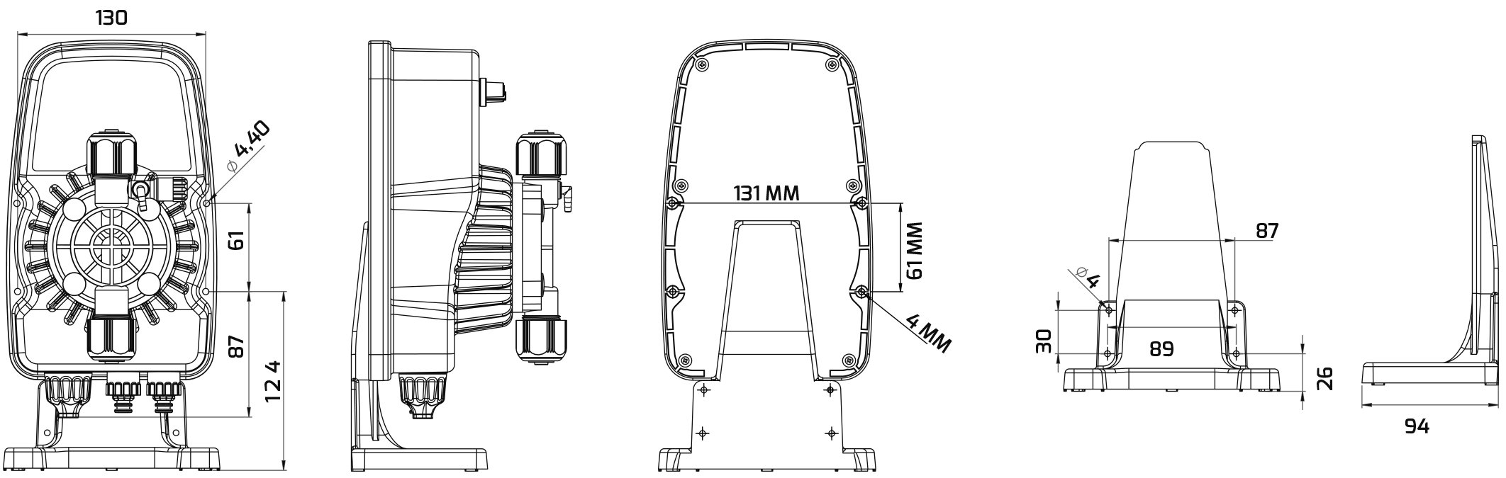 • Dikey monte edilen tasarımı ve kimyasal tank üzeri montaj ayağı sayesinde alternatif