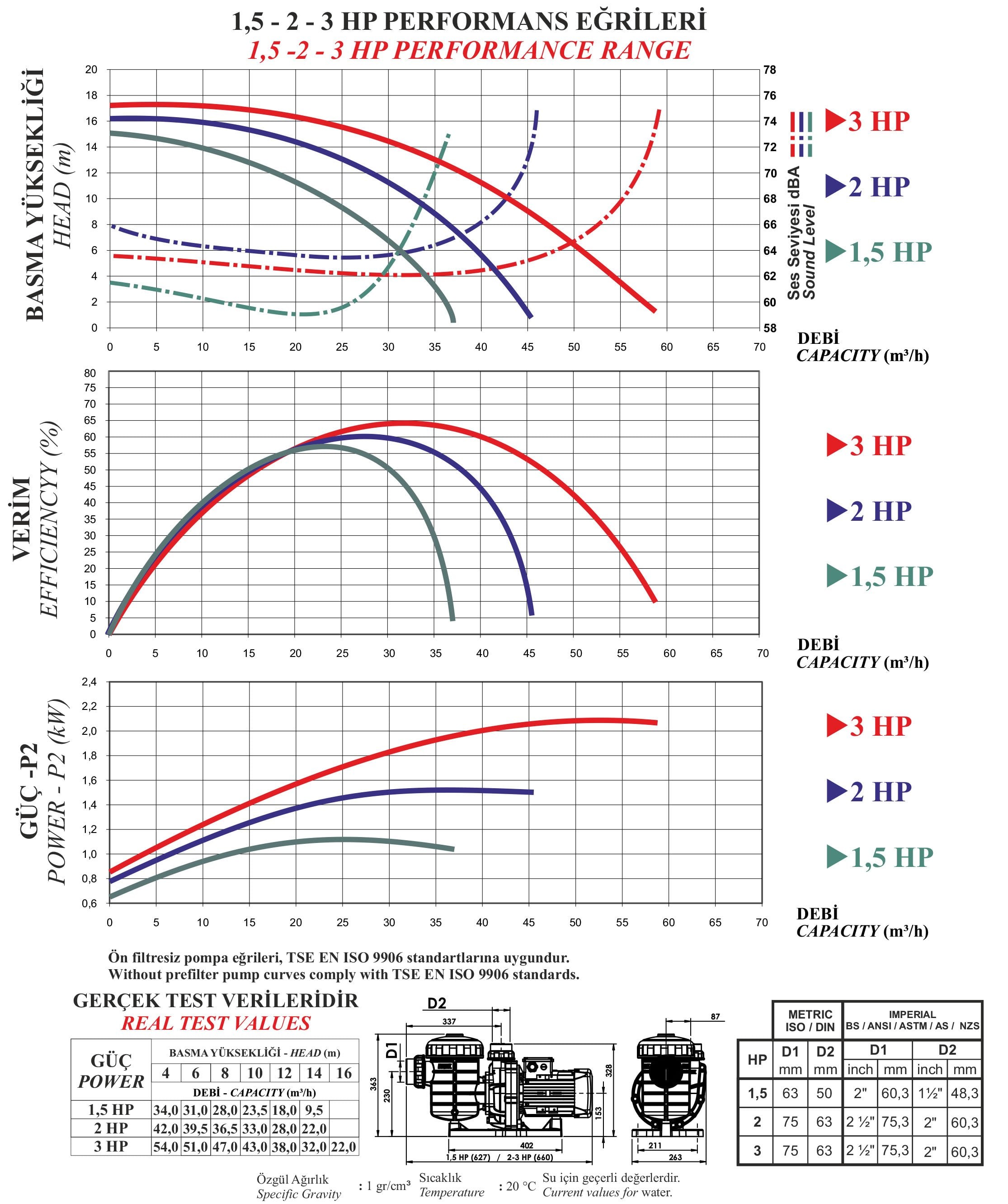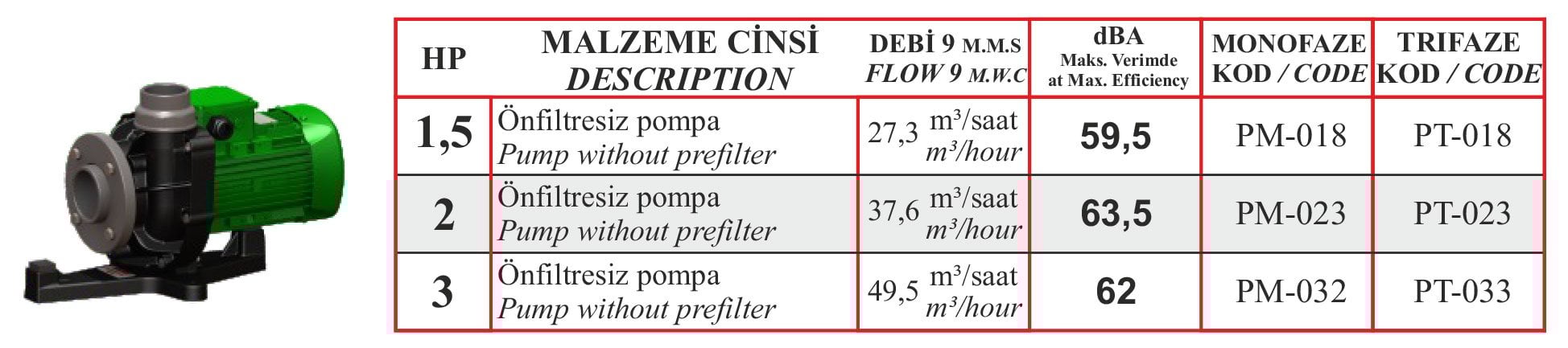 - Monofaze: 220V - 50 Hz 2850 devir/dakika