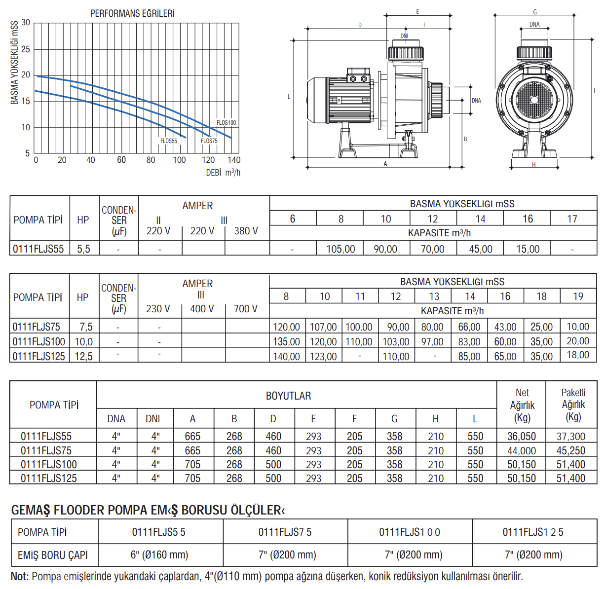 - Emme ve basma ağızları kendinden rakorlu; Ø110. 1450 d/d