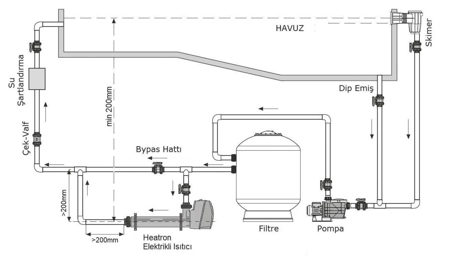 Bu döngü, suyun sürekli olarak ısıtıcıdan geçmesini ve havuzun genel sıcaklığını yükseltmesini sağlar.