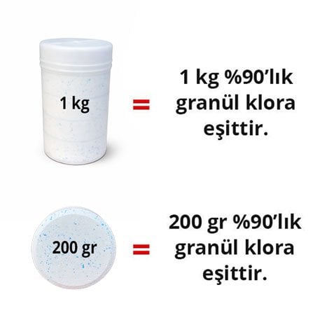 Tablet klor 200 gramlık tabletler halinde aslında 90'lık klordur.