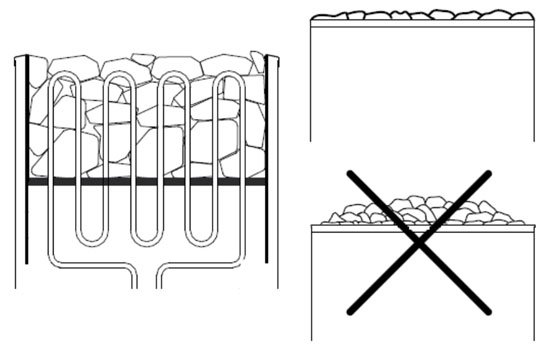 - Sauna taşlarını yılda en az bir kez yeniden düzenleyin (Ticari işletmelerde 6 ayda bir) ve yıpranmış taşları değiştirin. Bu taşların arasındaki hava sirkülasyonunu artırır. Rezistansların kullanım ömrünü uzatır.