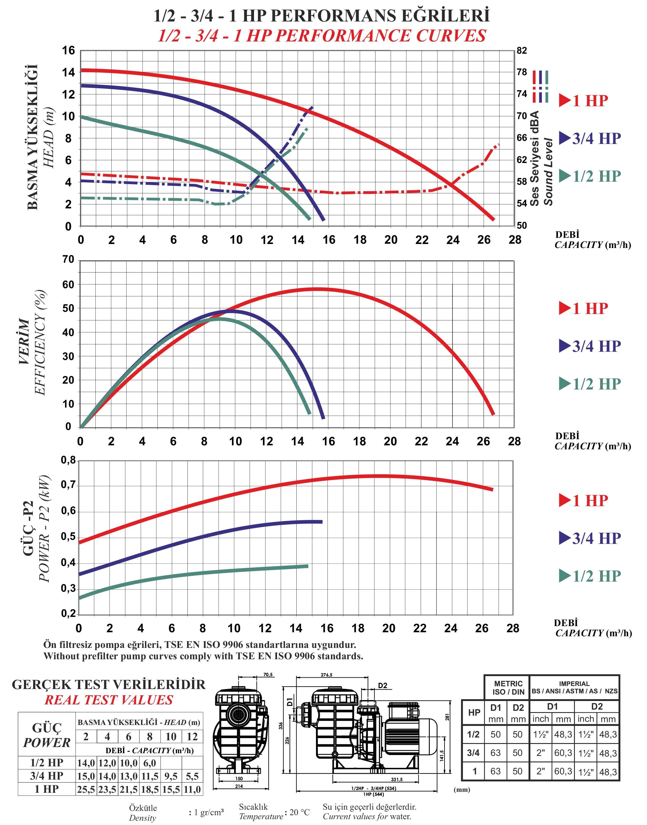 - Monofaze: 220V - 50 Hz 2850 devir/dakika