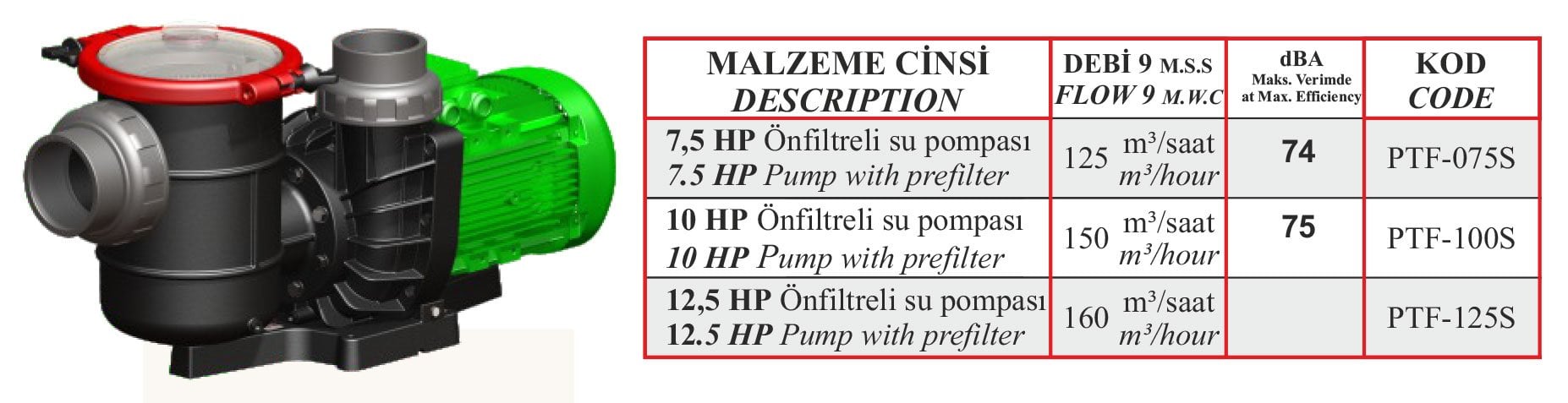 Süper Tufan Serisi Ön Filtreli Havuz Pompası