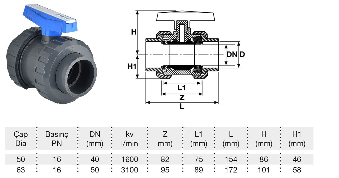 U-PVC Yapıştırma Muflu Küresel Su Vanası
