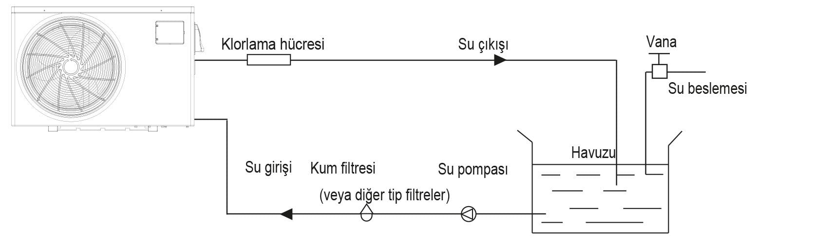 2- Ünite dış mekanda neredeyse her yere monte edilebilir. (Kapalı havuzlar için lütfen bize danışın.)